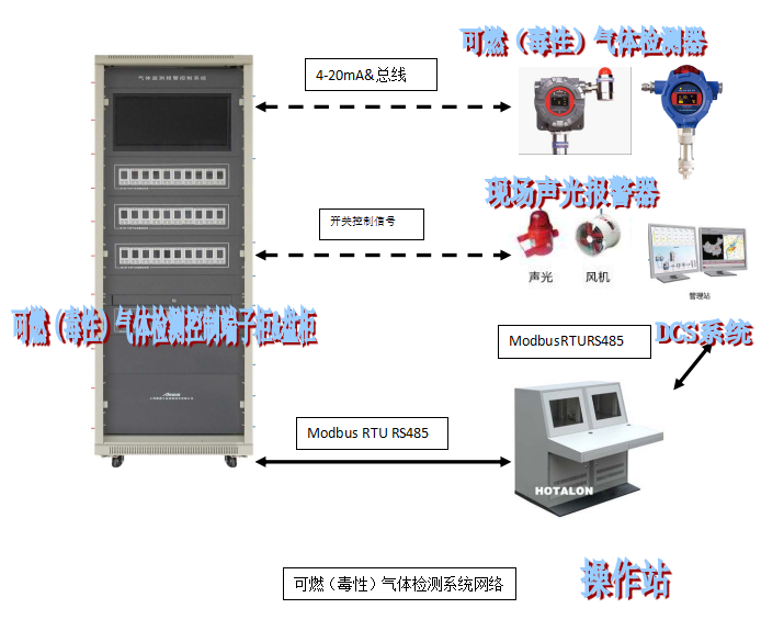 l 現(xiàn)場探測器自帶的警報器接受探測器輸出的一、二級報警信號,現(xiàn)場區(qū)域警報器接受GDS系統(tǒng)輸出的第二級報警信號。