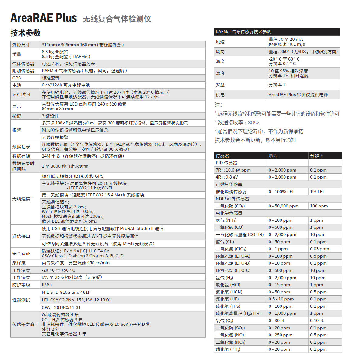 AreaRAE Pro 無線復合氣體檢測儀是一款具有遠程通信能力的可移動式區(qū)域檢測儀,它可同時檢測有毒有害氣體、可燃氣體、揮發(fā)性有機化合物等多種氣體和放電離輻射,也可以測量影響氣體擴散速度和方向等的氣象參數(shù)。