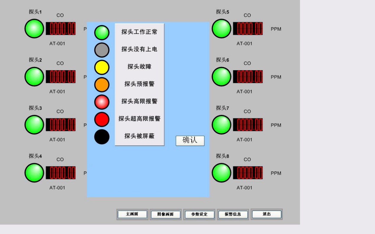 對于控制器系統(tǒng)界面的報警,必須在氣體濃度已經(jīng)恢復(fù)到報警設(shè)定值以下,報警才被清除。