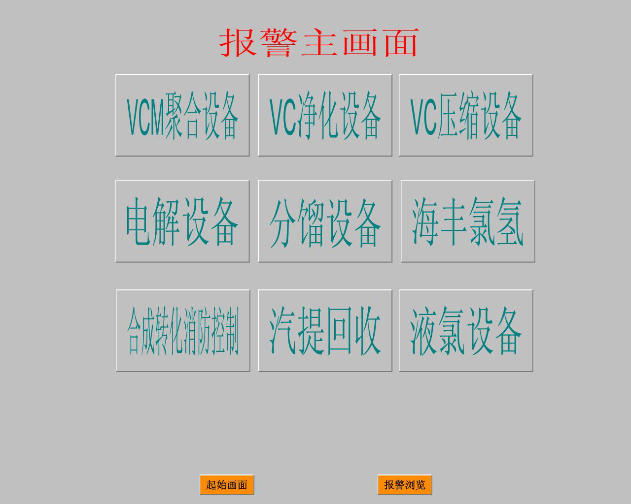 顯示及報警畫面將總貌畫面、分區(qū)畫面及單個探測器信息畫面??偯伯嬅鎸ǜ鱾€裝置和公用工程部分等,分區(qū)畫面為裝置內(nèi)的探測器位號及布置位置、報警信息等。用鼠標(biāo)點擊某一分區(qū)就可把界面轉(zhuǎn)入分區(qū)顯示狀態(tài)?,F(xiàn)場任一探測器故障報警時,總貌畫面內(nèi)對將的裝置將閃爍或自動彈出分區(qū)畫面。