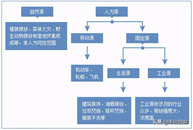 VOCs人為源包括移動(dòng)源和固定源,固定源中又包括生活源和工業(yè)源等。移動(dòng)源是指汽車(chē)、輪船、飛機(jī)等各種交通運(yùn)輸工具的排放。生活源VOCs排放對(duì)象復(fù)雜,包括建筑裝飾、油煙排放、垃圾焚燒、秸稈焚燒、服裝干洗等等。