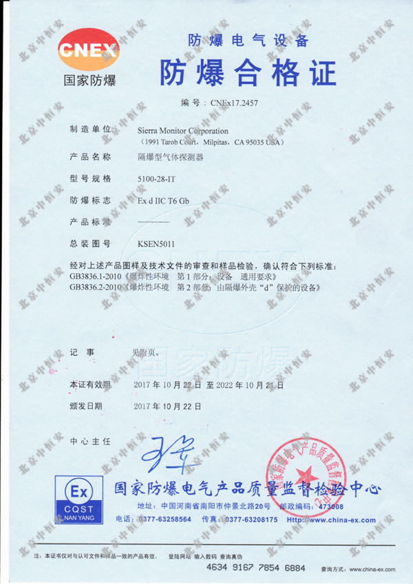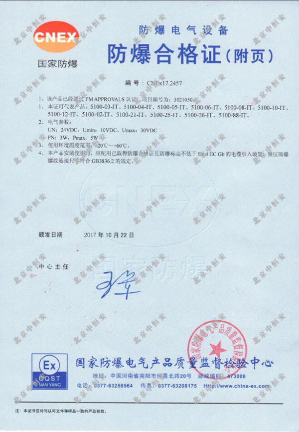防爆級(jí)別:Class 1, Div.1, Group B,C,D Class 1,Zone 1,group IIB+H2 IP66